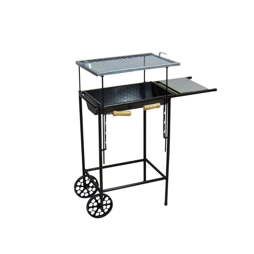 Churrasqueira Alvorada - com carrinho, grelha e tabuleiro em aço inox: