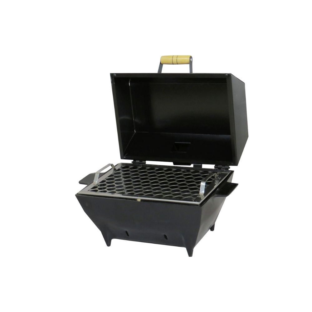 - Acompanha 1 grelha tela moeda em aço inox e tabuleiro galvanizado para carvão ( para maior durabilidade do produto ). - Acabamento em pintura eletrostática na cor preta.
