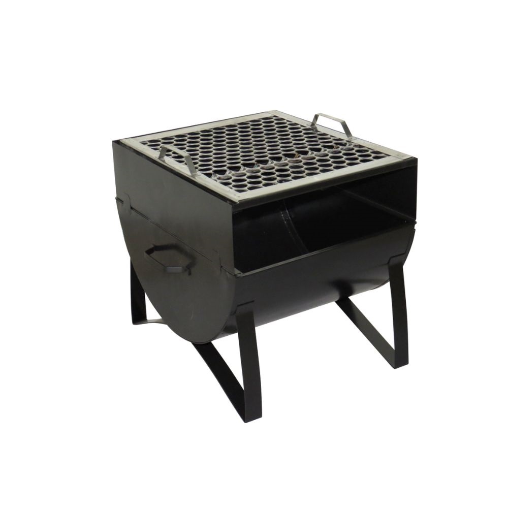 - Acompanha 1 grelha tela moeda em aço inox e tabuleiro galvanizado para carvão ( para maior durabilidade do produto ). - Acabamento em pintura eletrostática na cor preta.