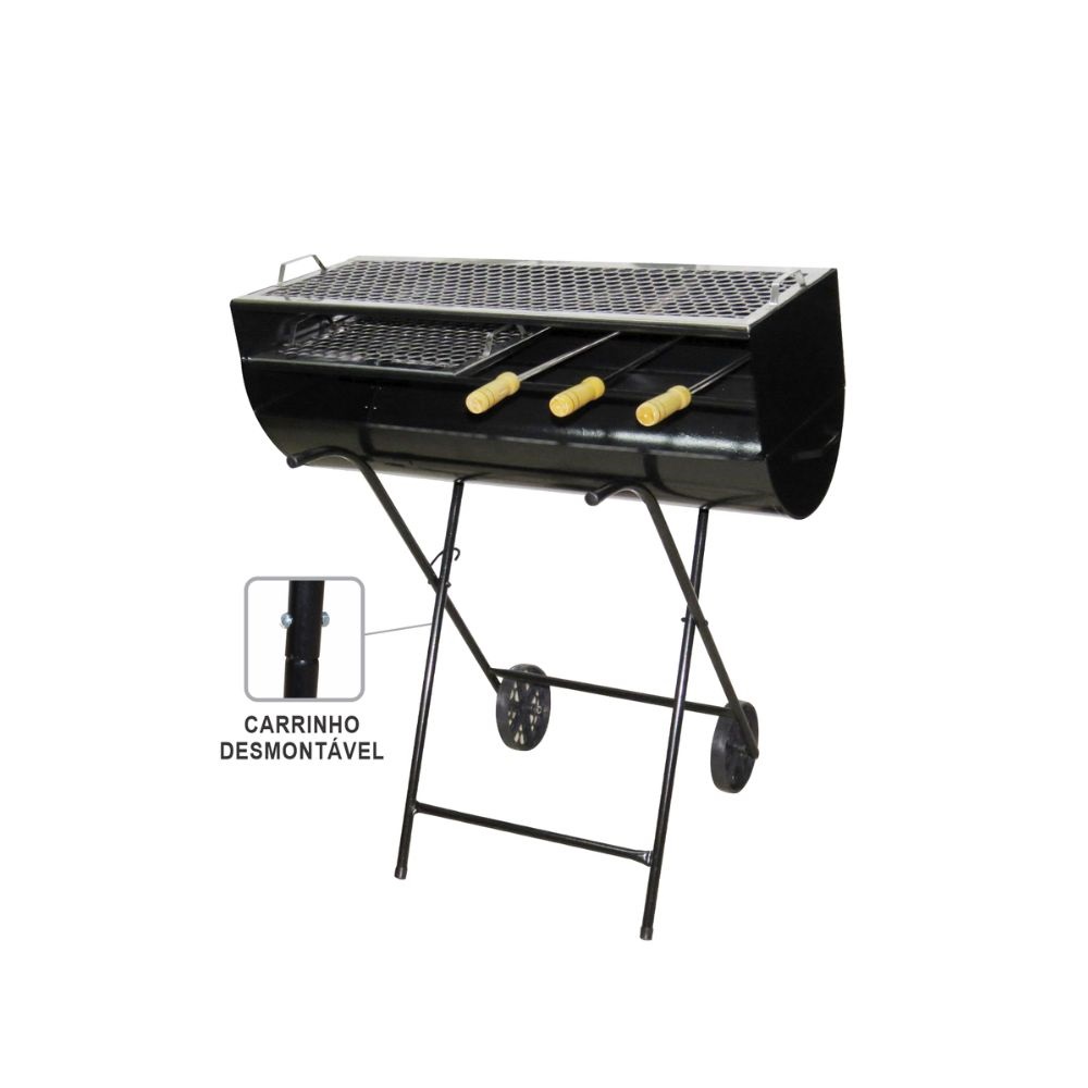 Churrasqueira espetinho - com carrinho, grelhas e espetos: