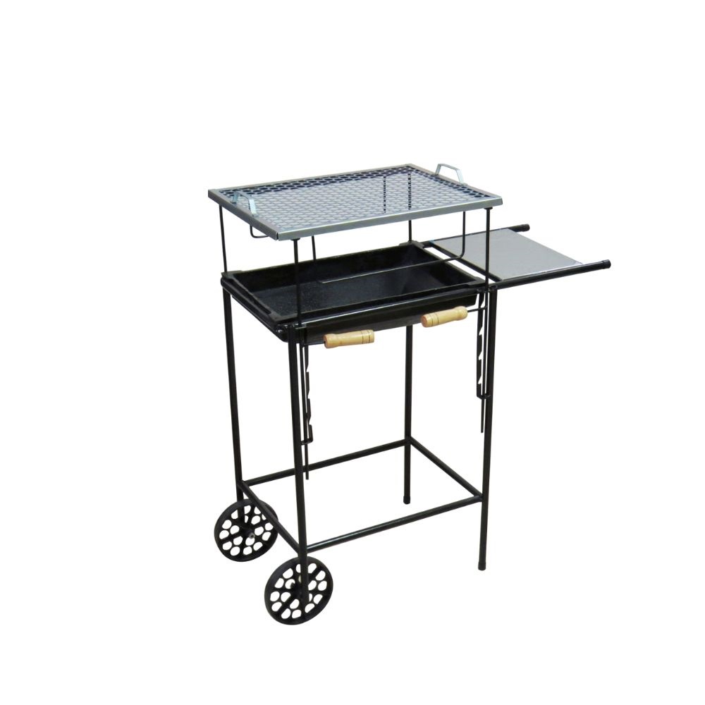 Churrasqueira Mineira - com carrinho, grelha e tabuleiro em aço inox.