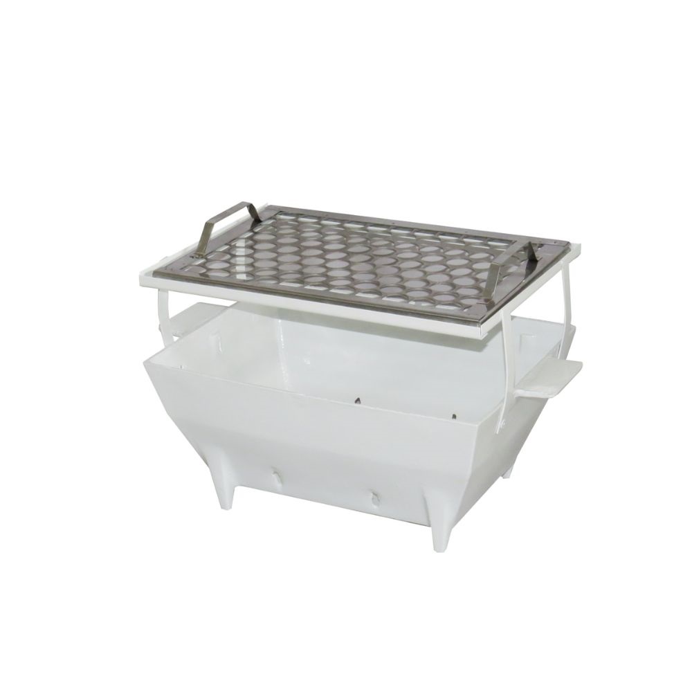 - Acompanha 1 grelha tela moeda em aço inox e tabuleiro galvanizado para carvão ( para maior durabilidade do produto ).
