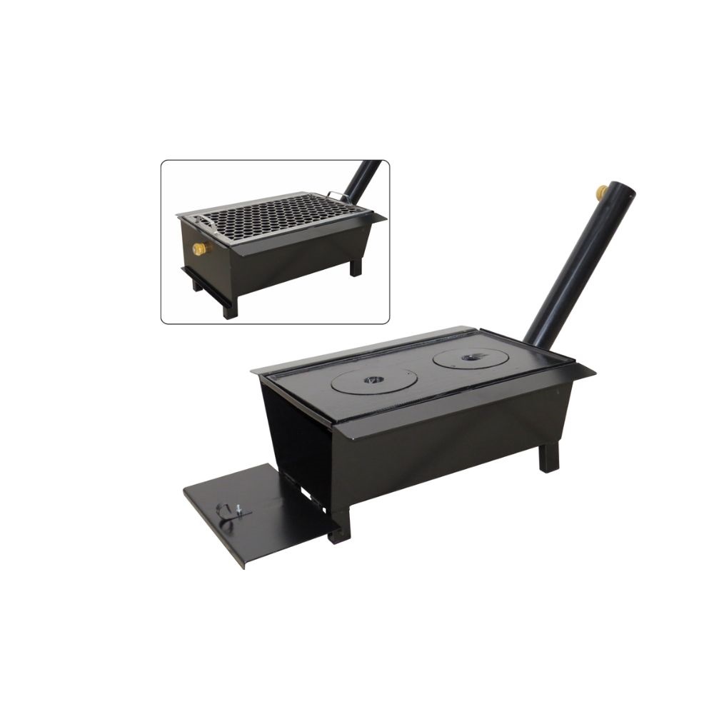 Fogão e Churrasqueira Caipira nº1 - com grelha e chapa 2 furos com tampa: