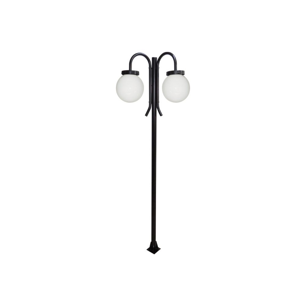 Luminária Globo Grande Duplo C/ Poste de Braço Curvo P/ Baixo Preto - 2 Metros