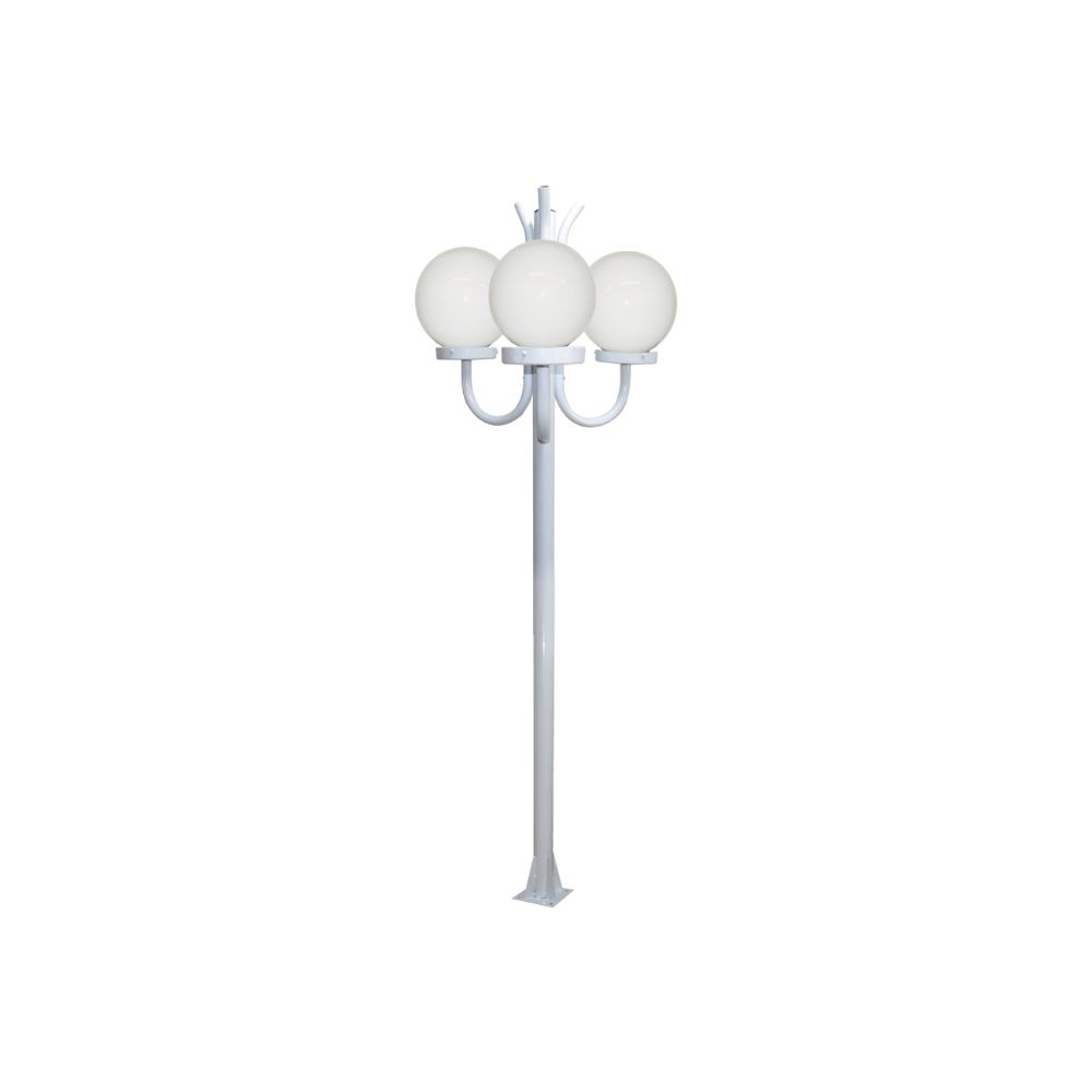 Luminária Globo Pequeno Triplo C/ Poste de Braço Curvo P/ Cima Branco - 2 Metros